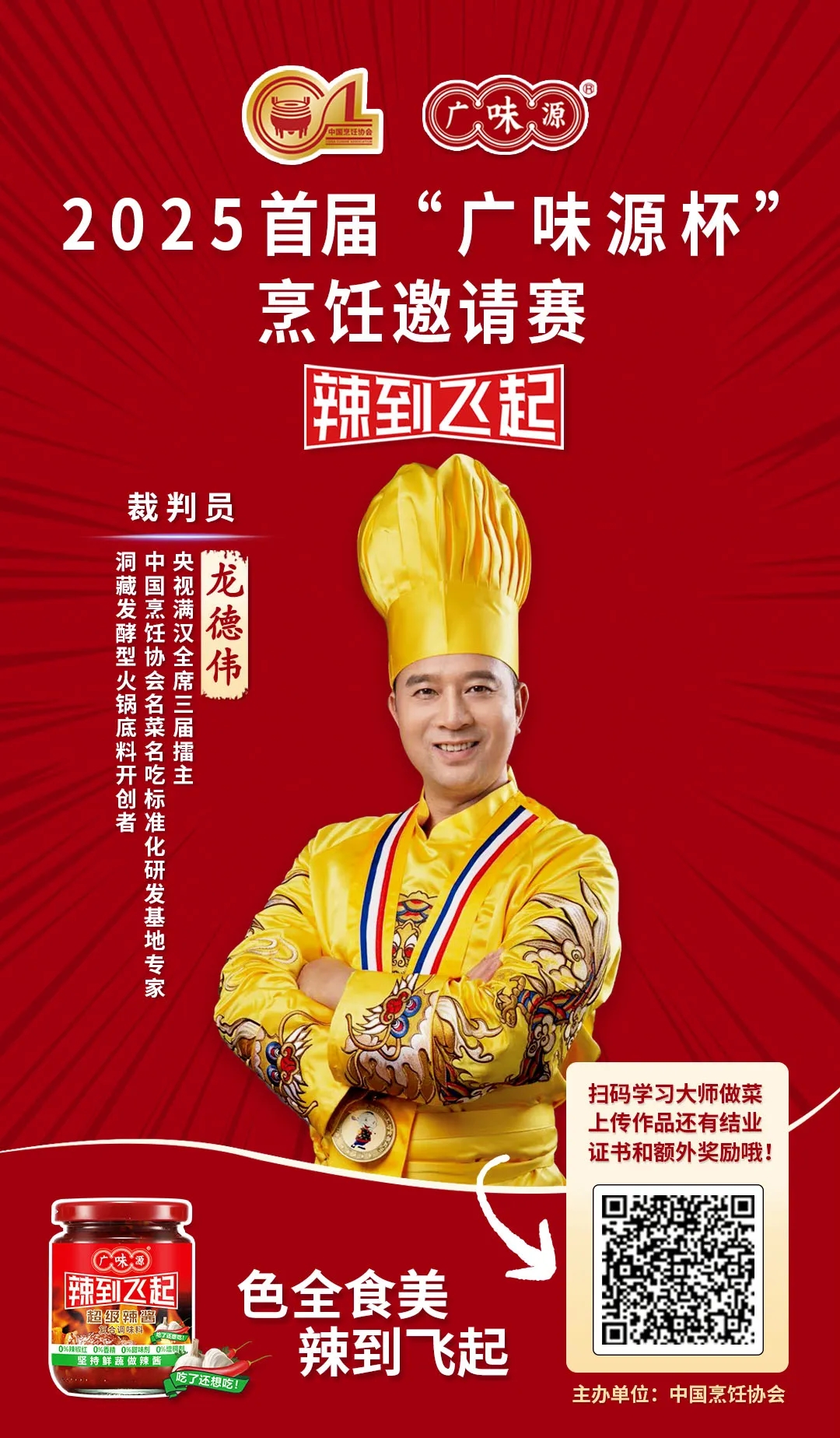 作為百年醬香世家的傳承者,廣味源始終以“匠心釀造”為魂。本屆大賽以“廣味源辣到飛起”之名,泰斗坐鎮(zhèn)、名廚云集、頂流加盟、權(quán)威督審、宗師壓陣,不僅匯聚頂尖烹飪智慧,更致力于推動中華餐飲文化在堅守與創(chuàng)新中生生不息。我們堅信,在如此殿堂級評審天團(tuán)的見證下,每一位參賽廚師都將以極致技藝,在“廣味源杯”的舞臺上,書寫屬于自己的味覺傳奇!